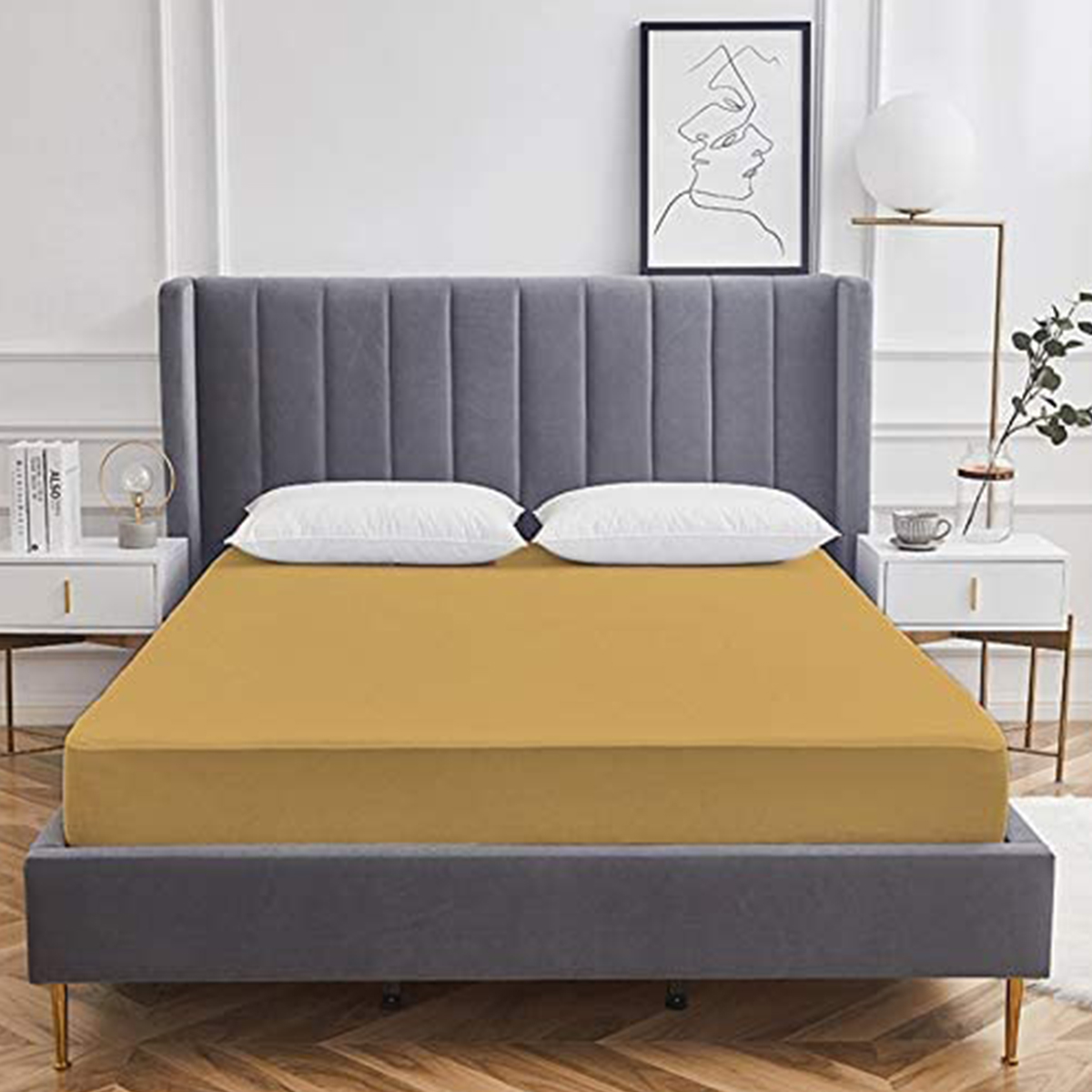Preserve mattress quality, protect from stains, prolong its use with Night Gold plain protectors. Quilted outer fabric pairs with 120 GSM fibre fill to soak up water and spills fast, while elastics grip tight for no slips. Standard fits single 36×78 inches (90×200 cm), twin 42×78 inches (105×200 cm), queen 60×78 inches (150×200 cm), king 72×78 inches (180×200 cm). Order fitted versions with PVC backing or any custom size on request to match your bed perfect. Night Gold mattress protectors keep mattresses fresh longer against dust, liquids, allergens – everyday guard for better sleep setup.